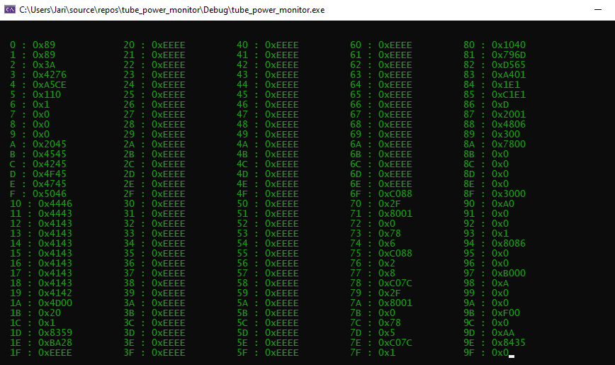 Figure 1. Captured UDP frame. The frame receiver pads messages shorter than 256 bytes with 0xEE thus they are not part of the received UDP frame