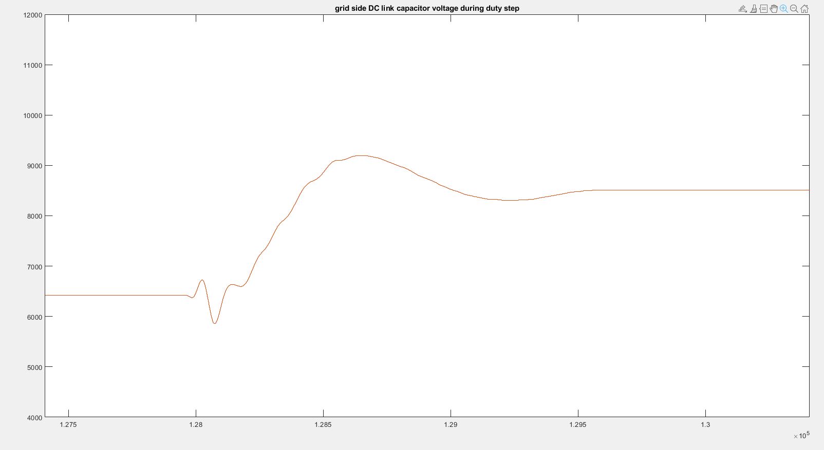 Figure 11 Zoomed in grid side dc link voltage during duty step change